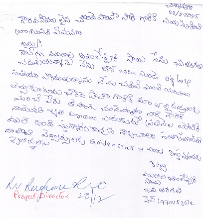 Bighelp thanks Ravisankar Videla for kindly sponsoring the education of Venkata Amaleswara Sai Murala.