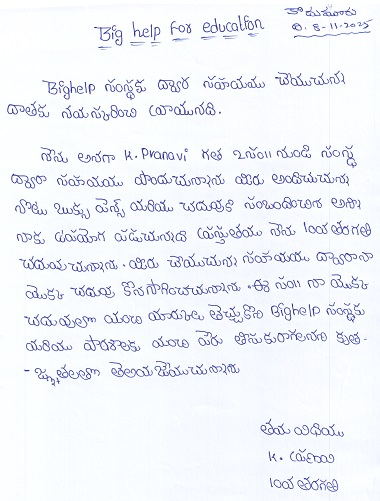 Bighelp thanks Vamshi Bommavaram for kindly sponsoring the education of Pranavi Kurakula.