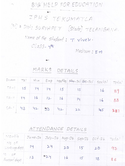 Bighelp thanks Ganesh Chintalapati for kindly sponsoring the education of Vivek Thatipamula .