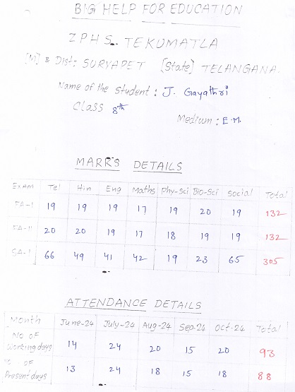 Bighelp thanks Swathi Donthula for kindly sponsoring the education of Gayathri Jala .