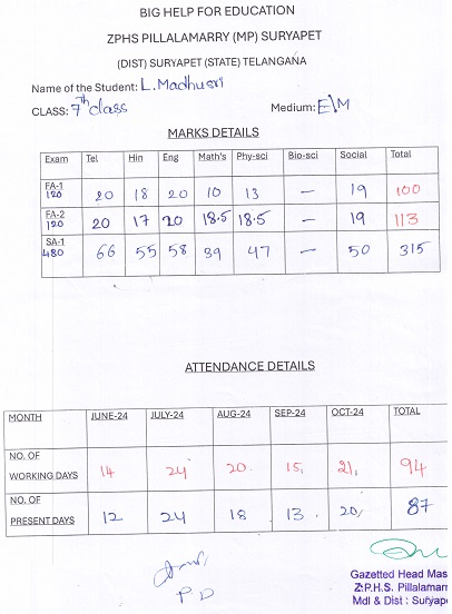 Bighelp thanks Pravar Gollamudi for kindly sponsoring the education of Madhu Sri Lodangi.