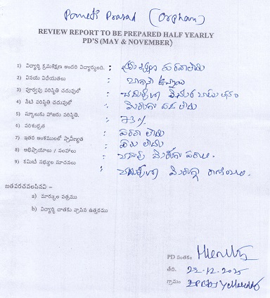 On File Both parents died. Financially very poor. Male 7 6 Telugu