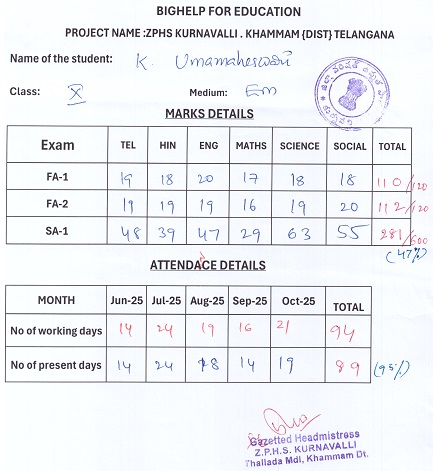 Bighelp thanks Raja Sekhar Pathuri for kindly sponsoring the education of Uma Maheswari Kothapally.