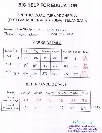 Zilla Parishad High School Kodgal Jadcherla Mandal Mahabubnagar Dist. T.S, India 509301 |