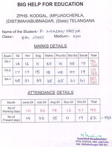 Zilla Parishad High School Kodgal Jadcherla Mandal Mahabubnagar Dist. T.S, India 509301 |