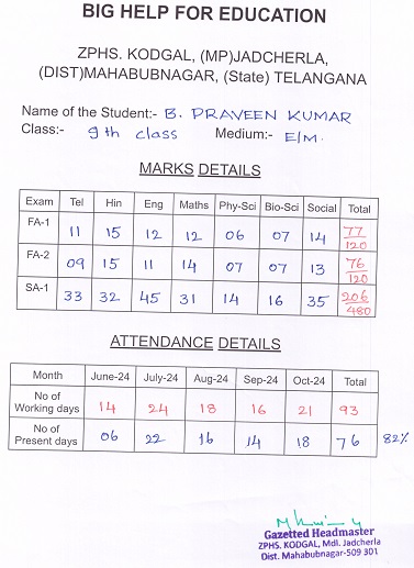 Zilla Parishad High School Kodgal Jadcherla Mandal Mahabubnagar Dist. T.S, India 509301 |