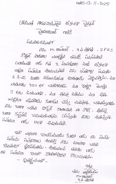 Father died. Financially very poor. |