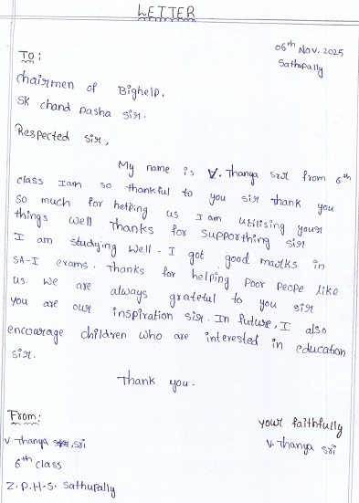 C/O Latha Velleswarapu H.No ; 2-42/1 Ayyagaripet Sathupally Mandal Khammam Dist. T.S, India 507303 |