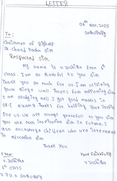 C/O Vijaya Laxmi Ayyagaripet Sathupally Mandal Khammam Dist. T.S, India 507303 |