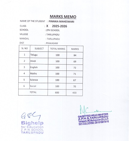 Zilla Parishad High School Tarlupadu Tarlupadu Tarlupadu Mandal Prakasam Dist. AP, India 523332 |