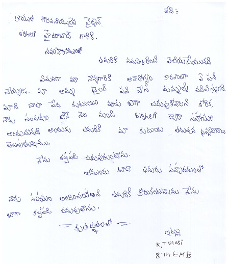 C/O Renuka Kusini H.No ;4-28/9 Bethupally Sathupally Mandal Khammam Dist. T.S, India 507303 |