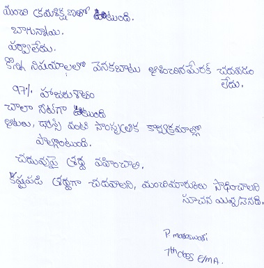 C/O Chinna Parsa Sadasivunipalem Sathupally Mandal Khammam Dist. T.S, India 507303 |