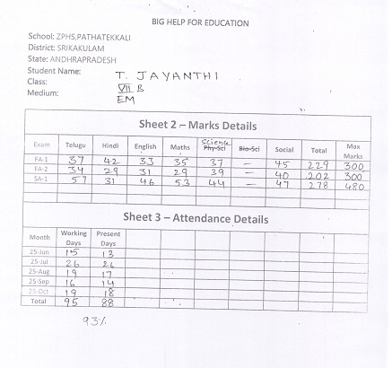 Bighelp thanks Gayatridevi and Ravi Ika for kindly sponsoring the education of Jayanthi Thota.