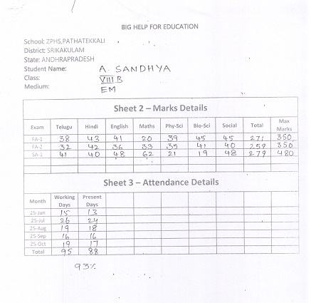 Bighelp thanks Pavana Reddy for kindly sponsoring the education of Sandhya Anga.