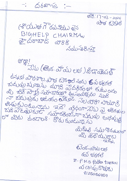 Bighelp thanks Siva Nidamarthy for kindly sponsoring the education of Hema Latha Tenka.
