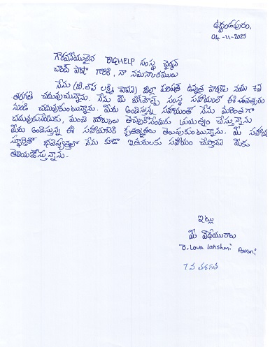 Bighelp thanks Swarnalatha Tummala for kindly sponsoring the education of Lova Lakshmi Pavani Basanaboina.