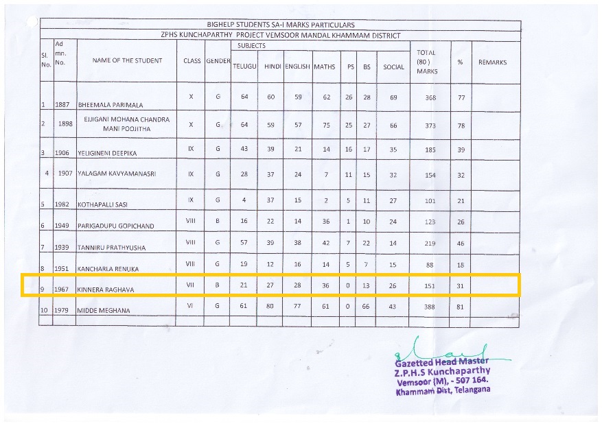 Zilla Parishad High School Kunchaparthy Vemsoor Mandal Khammam Dist. T.S, India 507164 |