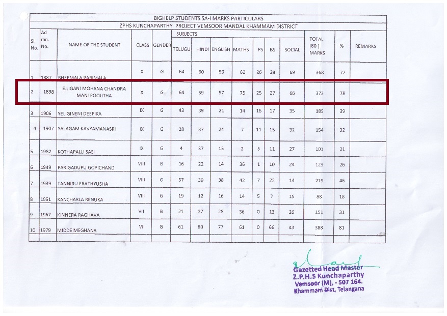 Zilla Parishad High School Kunchaparthy Kunchaparthy Vemsoor Mandal Khammam Dist. T.S, India 507164 |