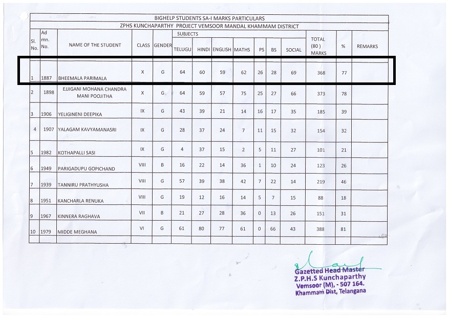 Zilla Parishad High School Kunchaparthy Kunchaparthy Vemsoor Mandal Khammam Dist. T.S, India 507164 |