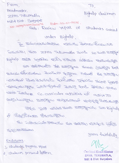 Zilla Parishad High School Tekumatla Tekumatla Suryapet Mandal Suryapet Dist. T.S, India 508376 |