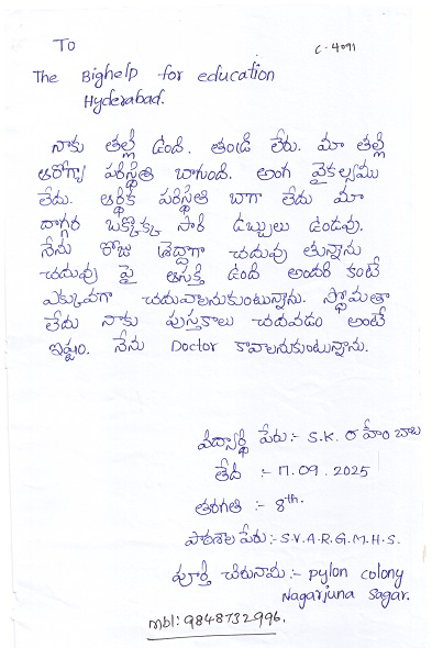 Father died. Financially very poor. |