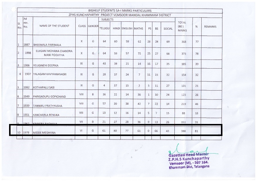 Zilla Parishad High School Kunchaparthy Vemsoor Mandal Khammam Dist. T.S, India 507164 |