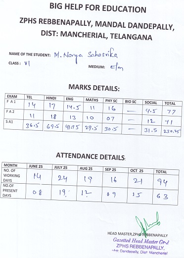 Zilla Parishad High School Rebbenapally Dandepally Mandal Mancherial Dist. T.S, India 504215 |