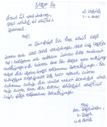 C/O Ramanamma Karra B.Cherlopalli Peddaraveedu Mandal Prakasam Dist. AP, India 523320 |
