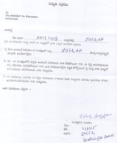 Child Address for communication: