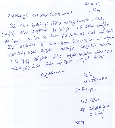 Bighelp thanks Dheerendra Ramjee Godavarthi for kindly sponsoring the education of Pujitha Kadali.