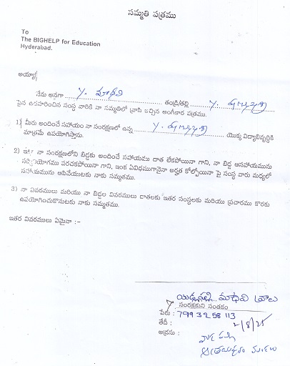 Bighelp thanks Prabhakara Rao Immidisetti for kindly sponsoring the education of Shanmukha Sri Yadapalli.