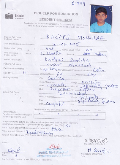 C/O Kadari Saritha Arvapally Jajireddygudem Mandal Suryapet Dist. T.S, India 508224 |