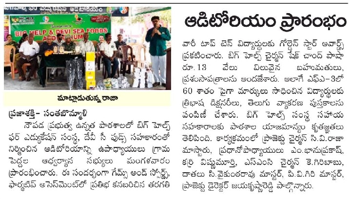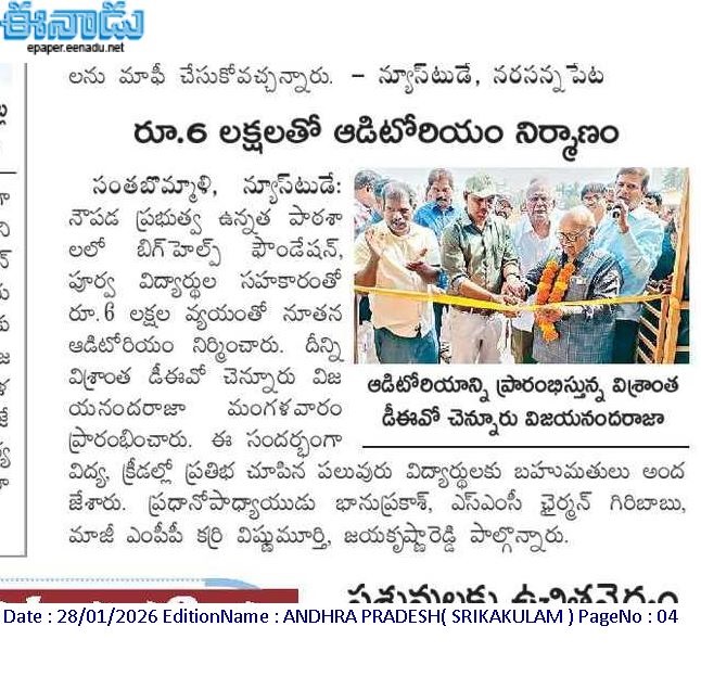 Headmaster of Govt. High School, Naupada, Srikakulam district, AP requested Bighelp to provide financial support for construction a dining hall in their school.