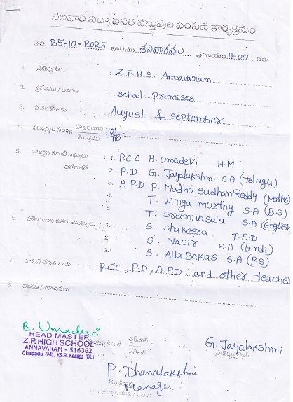 | Provided NMMS Material to Z.P. H. School-Annavaram |