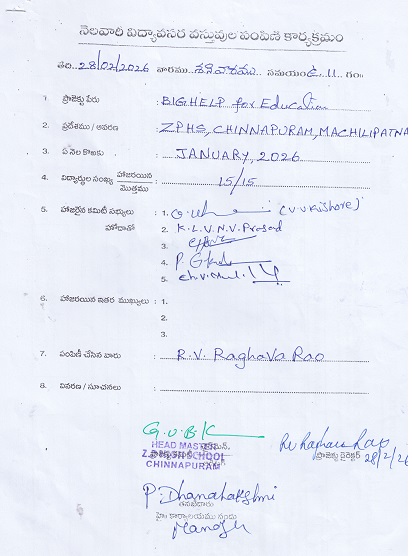 | Donated Sports material - Z.P.H. School, Chinnapuram 2026 |