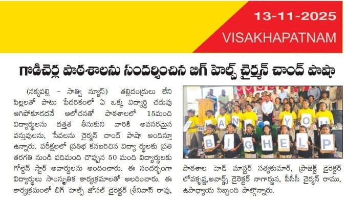| 12-Nov-2025 Bighelp Chairman Chand Pasha Sir Visited Z.P High School,Godicherla | | 12-Nov-2025 Bighelp Chairman Chand Pasha Sir Visited Z.P High School,Godicherla |