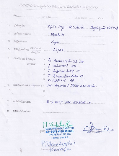 | Providing Vidya Volunteer in MPPSchool - Macherla |