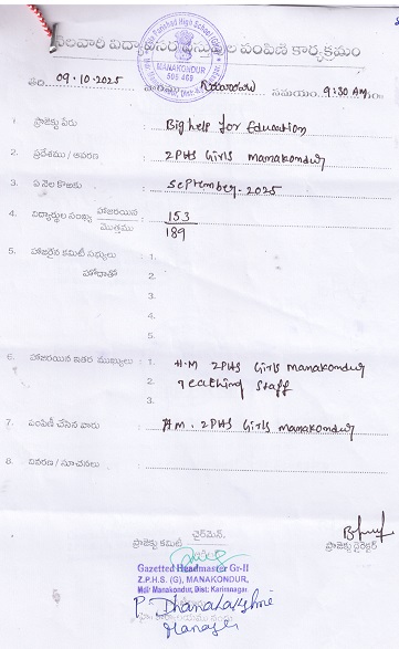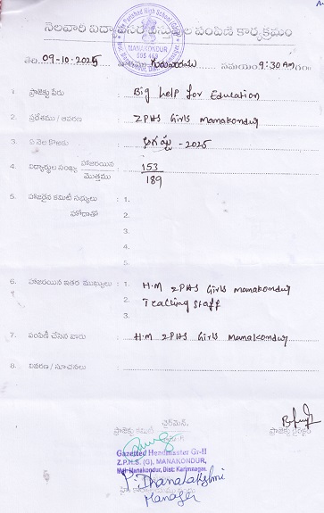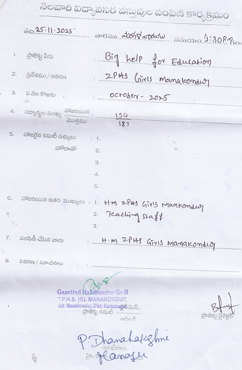 | Provided NMMS Material to Z.P. H. School-Manakondur 2025-26 |