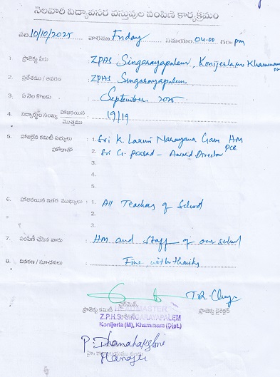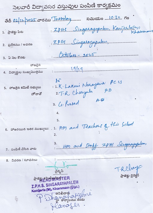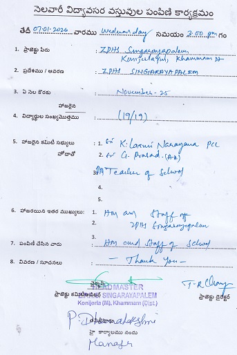 | Provided NMMS Material to Z.P. H. School - Singarayapalem 2022-23 |