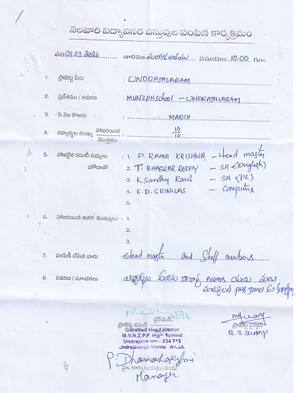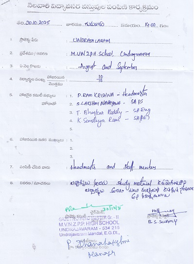 | Provided NMMS Material to M.V.N.Z.P.H. School - Undrajavaram |