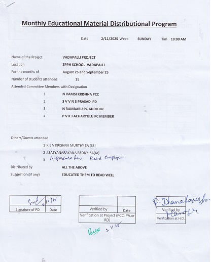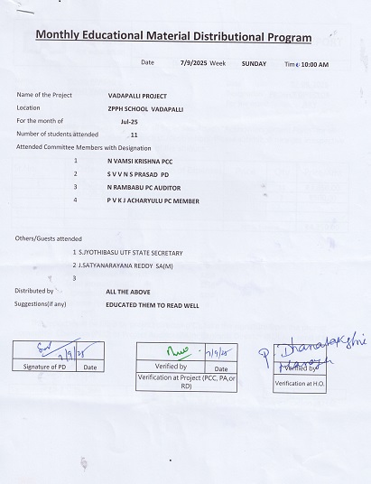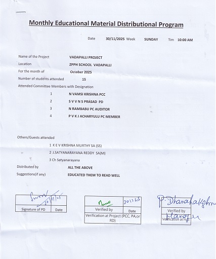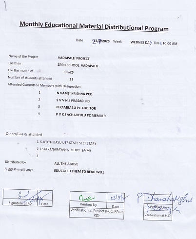 | Provided NMMS Material to Z.P.H. School-Vadapalli |