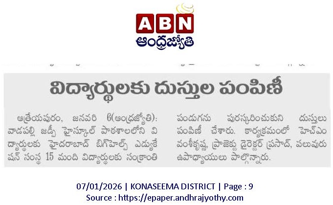 | 07-Jan-2026 News Published In AndhraJyothi On 07-Jan-2026 | | 07-Jan-2026 News Published In AndhraPrabha On 07-Jan-2026 | | 23-Jul-2025 Material Distribution for the Month of June - 2025 | | 07-Jan-2026 News Published In Eenadu On 07-Jan-2026 | | 07-Jan-2026 News Published In Majornews On 07-Jan-2026 | | 23-Jul-2025 Material Distribution for the Month of June - 2025 | | 23-Jul-2025 Material Distribution for the Month of June - 2025 | | 07-Jan-2026 News Published In Vishalandhra On 07-Jan-2026 |