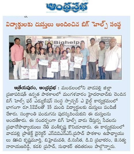| Sponsored tutor at Z.P.H. School - Vadapalli |