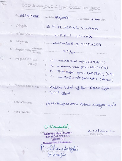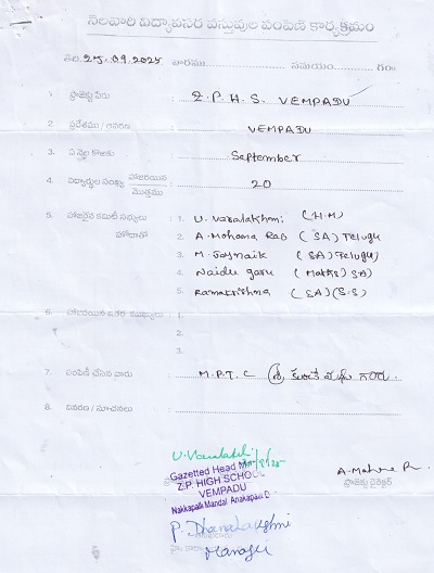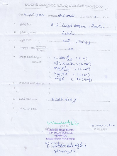 | Provided NMMS Material to Z.P.H. School - Vempadu 2024-25 |