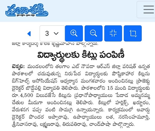 | 28-Jul-2025 Material Distribution for the Month of June - 2025 | | 01-Apr-2026 News Published In Prajaasakthi On 01-Apr-2026 | | 10-Jan-2026 News Published In Prajaasakthi On 10-Jan-2026 | | 11-Apr-2026 News Published In Prajaasakthi On 11-Apr-2026 | | 25-Oct-2025 Material Distribution for the Months of Aug & Sep - 2025 | | 28-Jul-2025 Material Distribution for the Month of June - 2025 | | 10-Jan-2026 News Published In Repatiudhyam On 10-Jan-2026 |