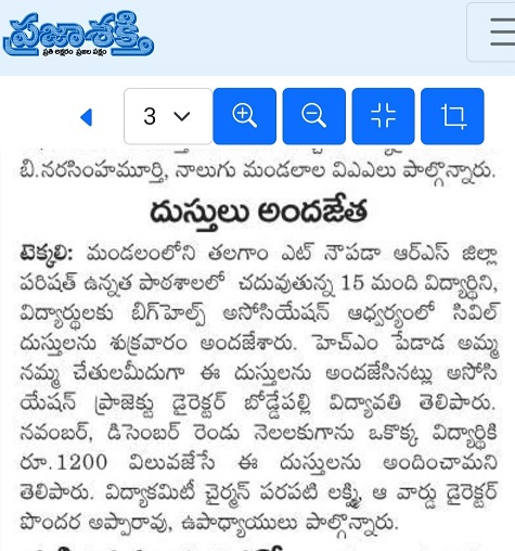 | 28-Jul-2025 Material Distribution for the Month of June - 2025 | | 10-Jan-2026 News Published In Prajaasakthi On 10-Jan-2026 | | 25-Oct-2025 Material Distribution for the Months of Aug & Sep - 2025 | | 28-Jul-2025 Material Distribution for the Month of June - 2025 | | 10-Jan-2026 News Published In Repatiudhyam On 10-Jan-2026 |