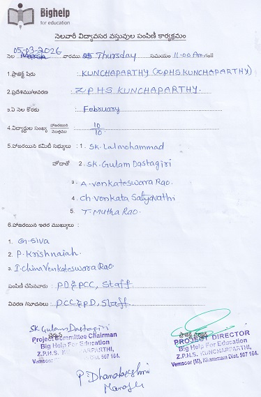 There are many children in and around the village of Kunchaparthi who have no option but abandon their schooling and go to work to support their family. The situation is even worse if the child does not have parents and earn their bread themselves. For all children sponsored under this project, it was almost everyday struggle for their existence and continuing their education was distant dream. Bighelp was able to form a project committee with the support of school headmaster, teachers, and villagers to help these underprivileged children and hope to give them a gift of bright future with the help of the sponsoring donors.