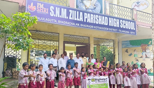 Bighelp has donated shoes, ties and belts to 300 students of S.N.M. Z.P.H. School, Korrajulagutta, Bhadrachalam, Bhadradrikothagudem district, Telangana.