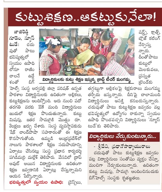 The school has a total strength of 200 girl students, and a government-appointed craft teacher provides training in various craft designs and garment stitching. However, due to the lack of adequate sewing machines, the students were unable to receive proper hands-on training. In response to a request from the Headmistress, Bighelp extended its support by providing four sewing machines along with necessary materials to the school. This intervention enables the students to receive effective practical training in stitching and enhances their skill development opportunities.