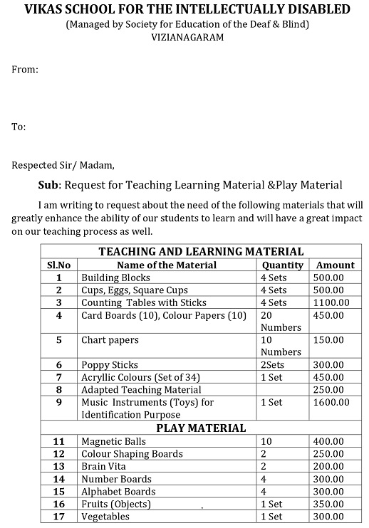 Donated Teaching & Learning material to Vikas school for the Mentally Retarded |